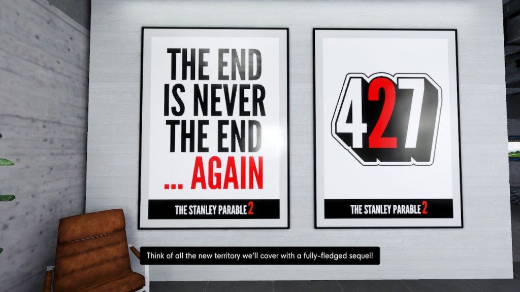 “You will play as Stanley, and you will not play as Stanley. You will make a choice, and you will have your choices taken from you. The game will end, the game will never end.”